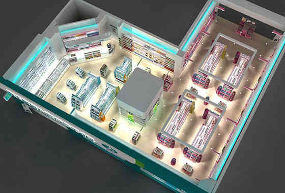廣州展廳設(shè)計(jì)公司海王星辰終端形象藥店裝修設(shè)計(jì)